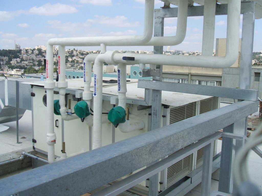 אוויר צח מטופל ומסונן מסופק לחללים השונים ע"י יחידות טיפול באוויר המורכבות בגג הבניין באמצעות מערכת תעלות פח.