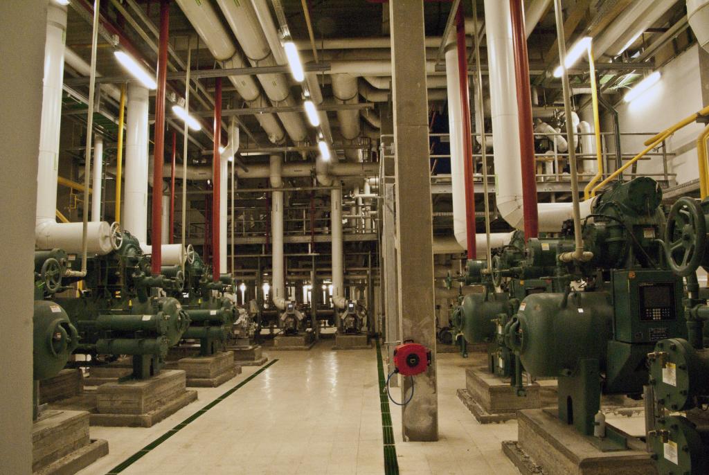 האמוניה מוזרם ממיכלי הפרדה של 12°c- ו 2°c- באמצעות משאבות אל צרכני הקצה, כלומר לסוללות מפזרי הקור של חדרי הצינון ולמחליפי חום המשמשים כמעבים במערכת הדרגה הנמוכה של ה- CO2.