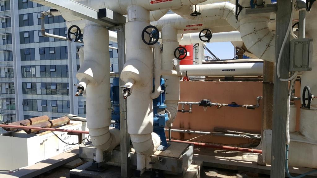 המערכת הישנה הוסבה למערכת עם שני מעגלים ומחלקים ראשיים למים קרים ומים חמים על מנת שתהיה יעילה אנרגטית.